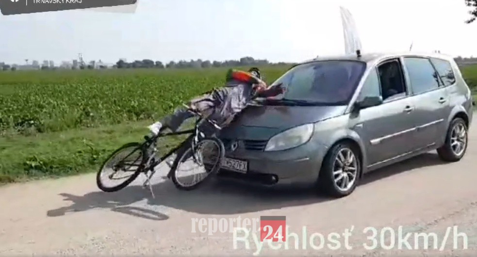 KR PZ Trnava |MM| Pri Hrnčiarovciach nad Parnou sme sa včera zúčastnili unikátneho crashtestu. Do figuríny cyklistu to vodič auta napálil najskôr v rýchlosti 30, 50 a nakoniec aj 68 km/h.