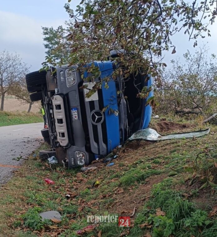 Na miesto sme vyslali skalických policajtov a neskôr aj dopravných policajtov, ktorí zistili, že k nehode došlo asi 20 m za obcou Radimov smerom na Holíč. Vodič na nákladnom aute nezvládol z nezistených príčin riadenie, vošiel na krajnicu a vzápätí sa celý kolos prevrátil na ľavý bok.